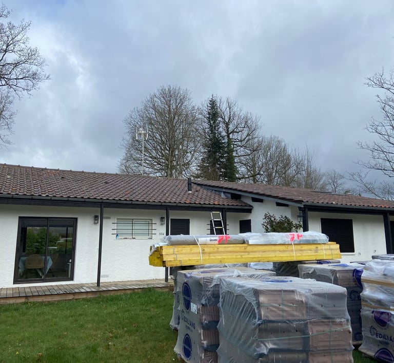 Dans le cadre d’une construction ou d’une extension, nous réalisons la pose complète de toiture avec des matériaux adaptés à votre habitation.